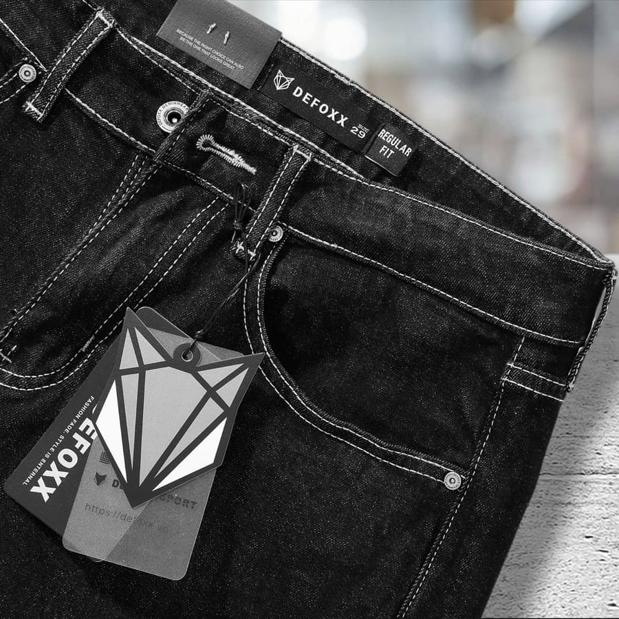 Các chi tiết như túi trước, túi sau, khóa kéo và nút cài đều được hoàn thiện chắc chắn. Miệng túi may gọn, hạn chế bai giãn, túi sau có đường thêu cong nhẹ. Dấu hiệu quen thuộc của Defoxx, giúp nhận diện thương hiệu nhưng vẫn giữ sự tinh tế.