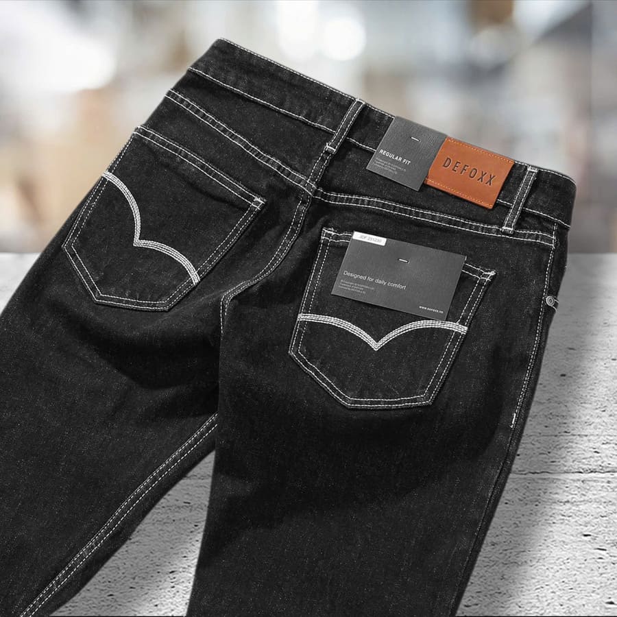 Quần jean Defoxx ống suông đen chỉ nổi 251230 – Dáng đứng mạnh mẽ, mặc càng lâu càng đẹp